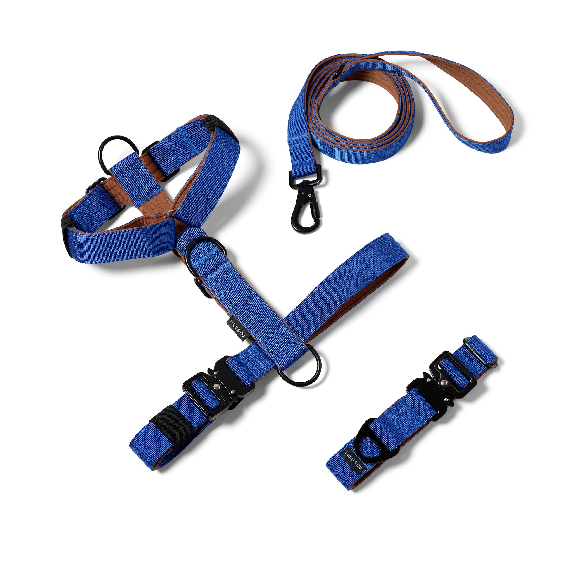Opgrader de daglige gåture med vores pakke der inkluderer en Antipull hundesele, et halsbånd og en hundesnor.